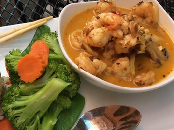 This is my yellow curry with shrimp. Laurie had a deconstructed spring roll salad.